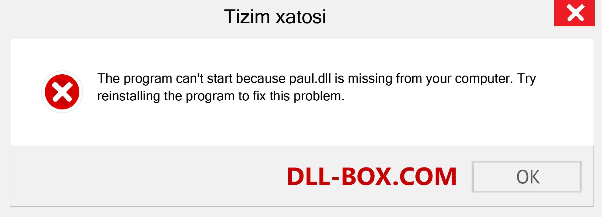 1. Dasturni ishga tushirib bo'lmaydi, chunki paul.dll kompyuteringizda yo'q. Ushbu muammoni hal qilish uchun dasturni qayta o'rnatishga harakat qiling.